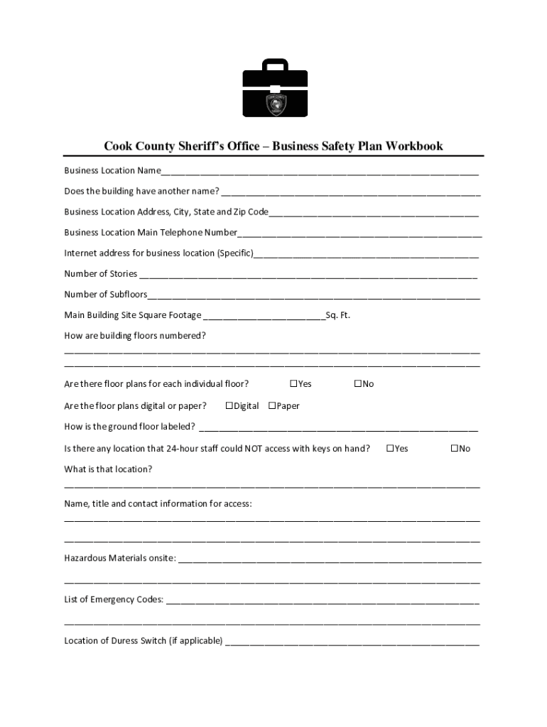 Cook County Sheriffs Office Business Safety Plan Workbook Business Location Name___ Does the building have another name? ___ Business Location Address, City, State and Zip Code___ Business Location