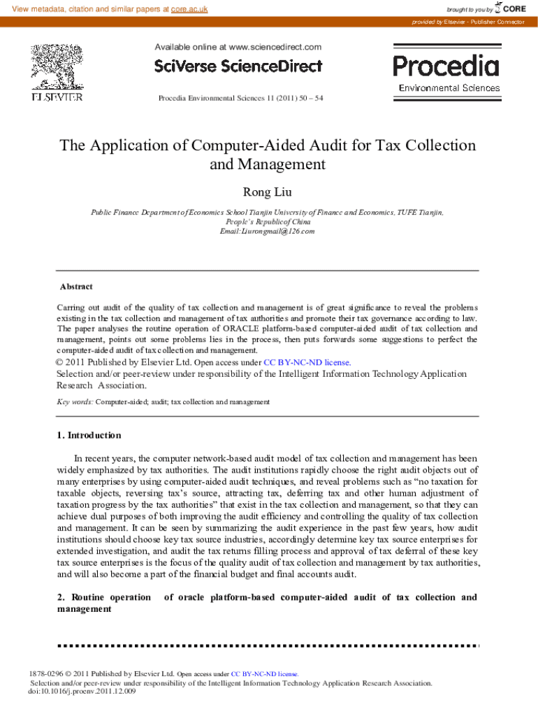 Get the free The Application of Computer-Aided Audit for Tax Collection and Management. Procedia ...