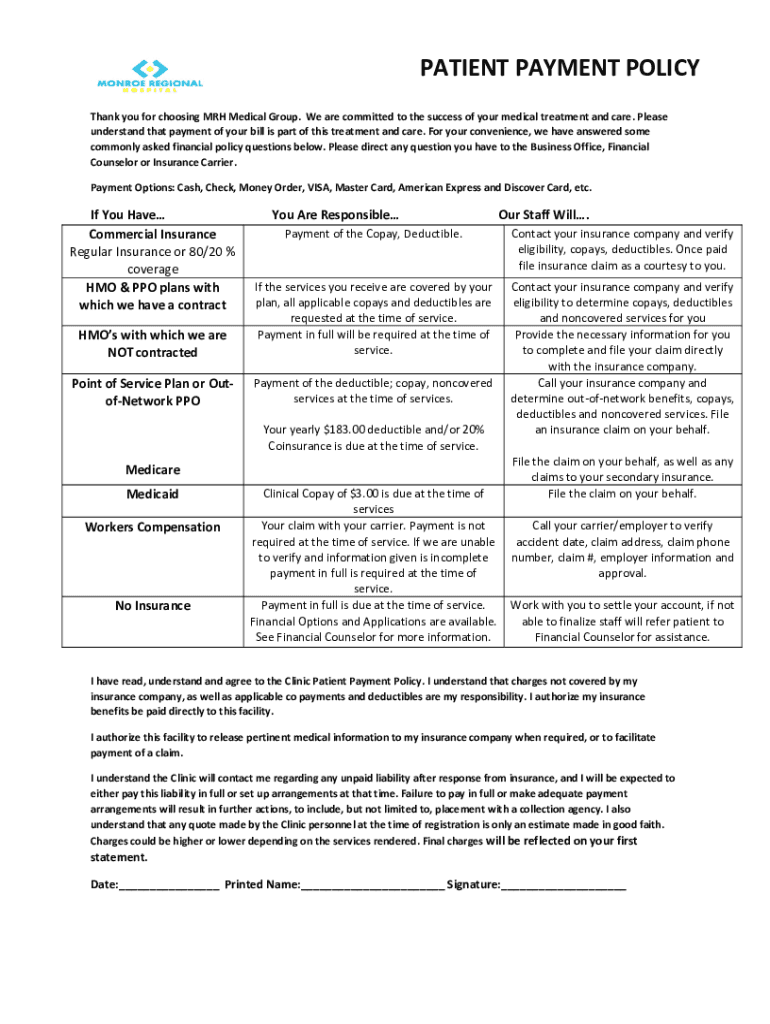 PATIENT PAYMENT POLICY Thank you for choosing MR Medical Group. We are committed to the success of your medical treatment and care. Please understand that payment of your bill is part of this treatment