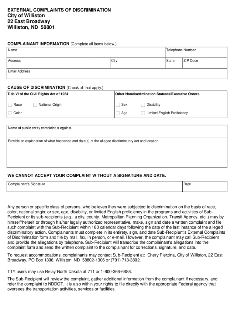 EXTERNAL COMPLAINTS OF DISCRIMINATIONCity of Williston
