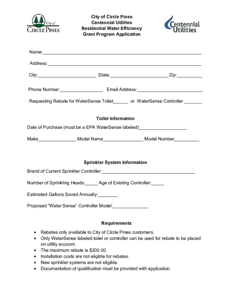 Get the free Application for Water Effiency Grant Water Sense Toilet and Controller