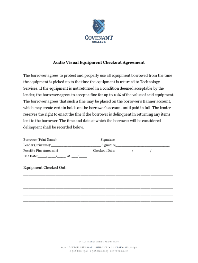 Get the free Audio Visual Equipment Checkout Agreement - portal covenant
