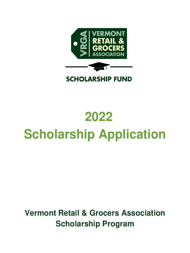 2022 Scholarship Application Vermont Retail & Grocers Association Scholarship Program Vermont Retail & Grocers Association 2022 Scholarship Program PURPOSE To provide financial assistance to eligible