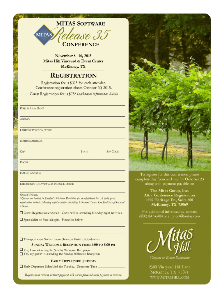REGISTRATION fee is $395 for each attendee. Conference registration closes October 30, 2015. Guest Registration fee is $75* (additional information below)FIRST & LAST NAME AGENCY CURRENT POSITION/TITLE