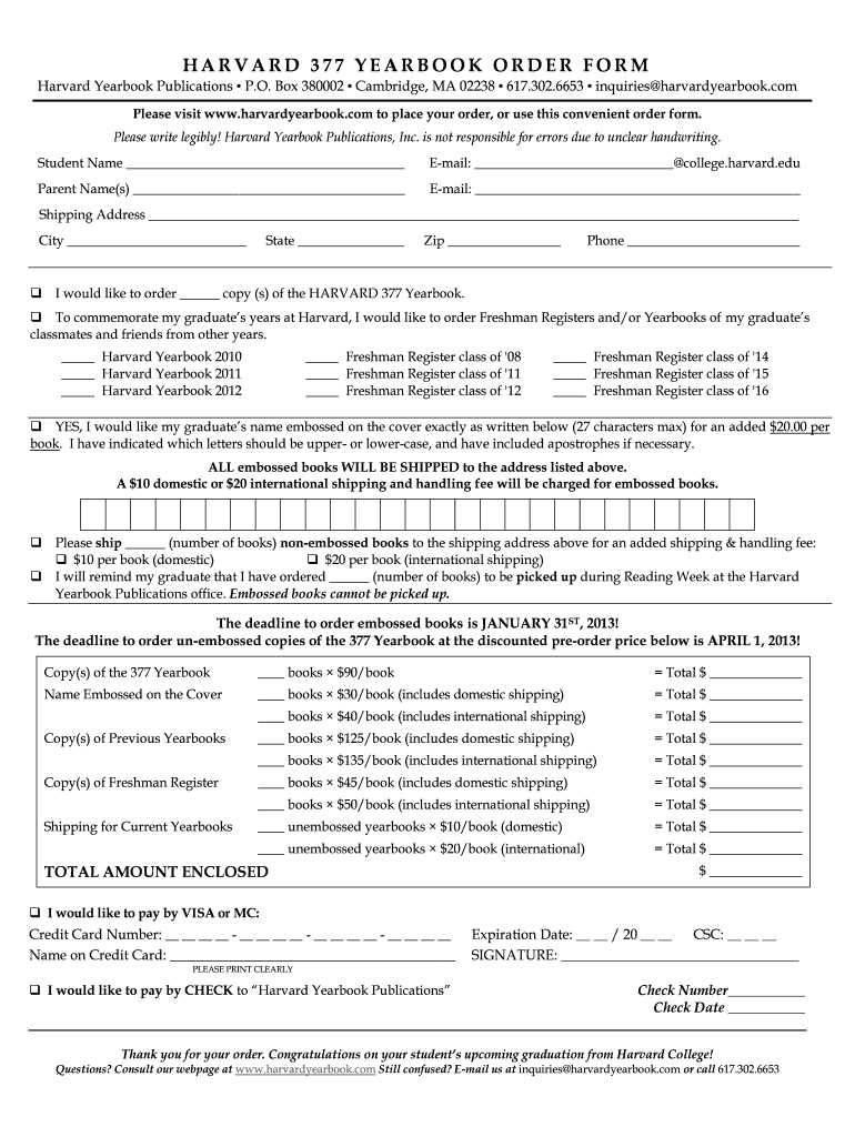 Edit your harvard 377 yearbook order form online