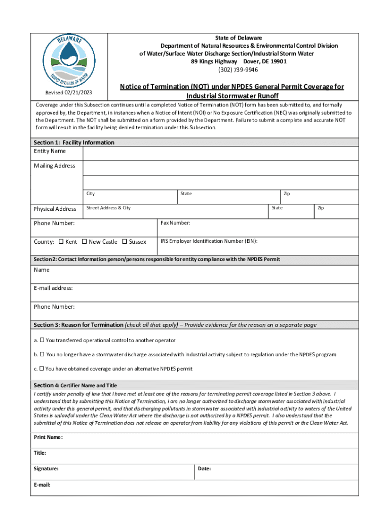 Get the free Notice of TerminationGeneral Industrial Storm Water Permitting Program.doc