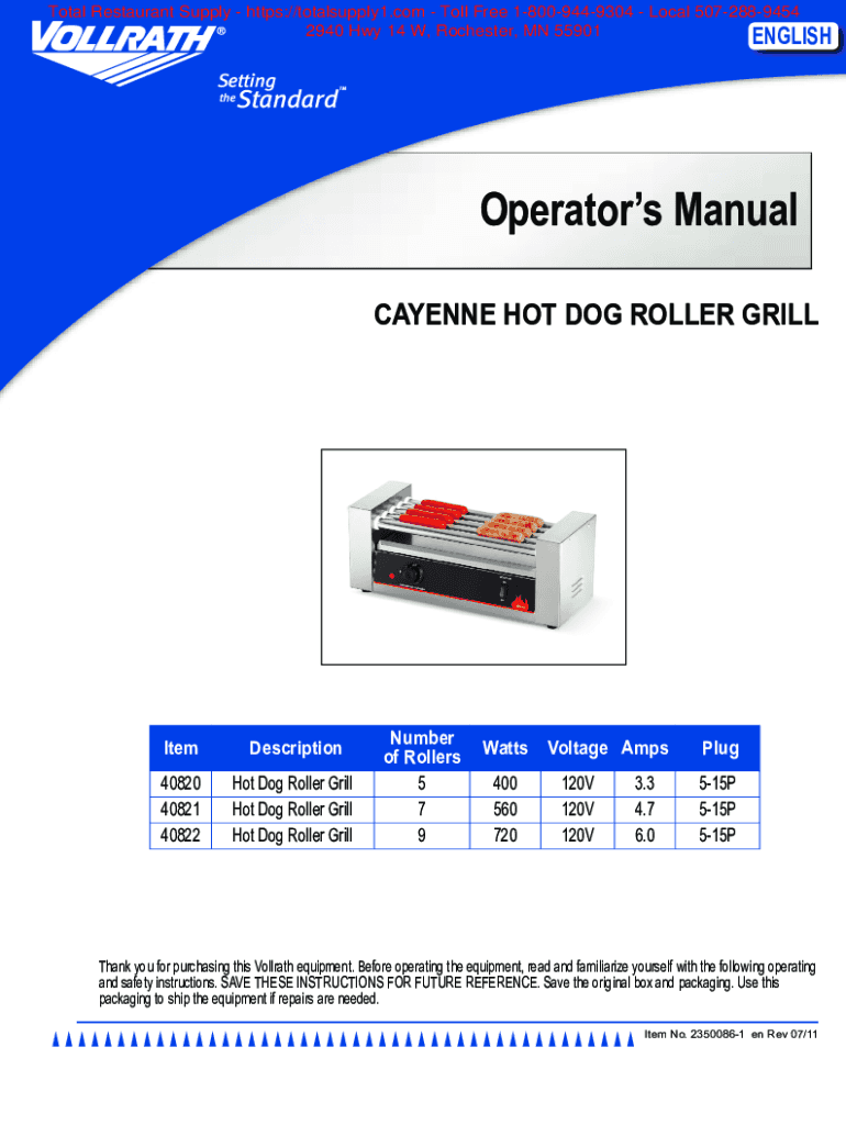 2940 Hwy 14 W, Rochester, MN 55901EnglishOperators Manual