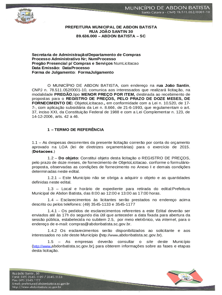 Instructions for the Licitaes - PREFEITURA MUNICIPAL DE ABDON BATISTA form