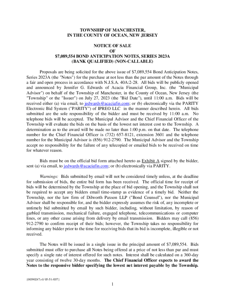 Get the free Notice of Sale Township of StaffORD (Ocean County, New ...
