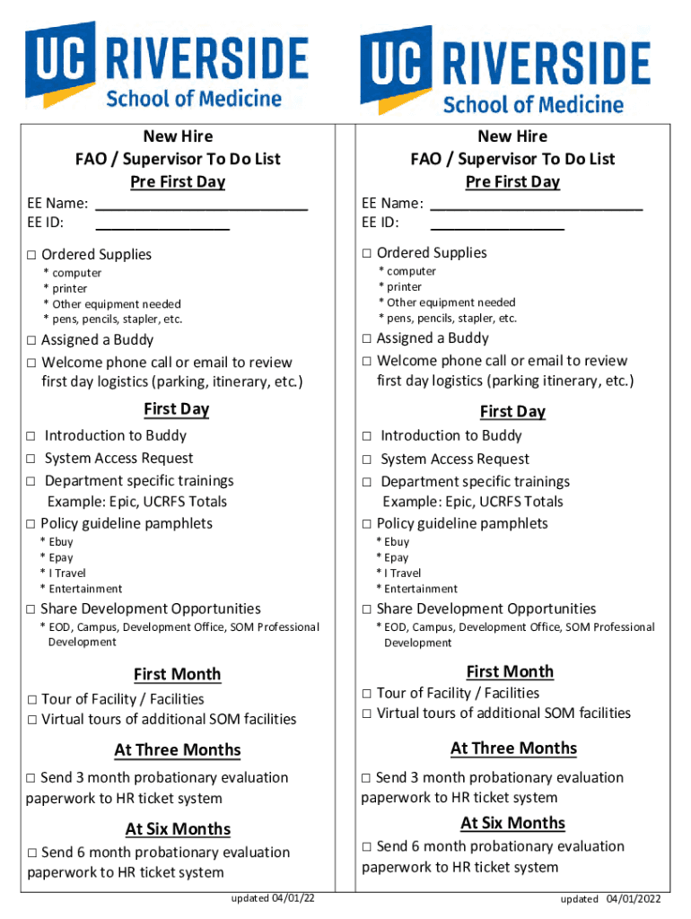 Get the free New Hire FAO / Supervisor To Do List Pre First Day