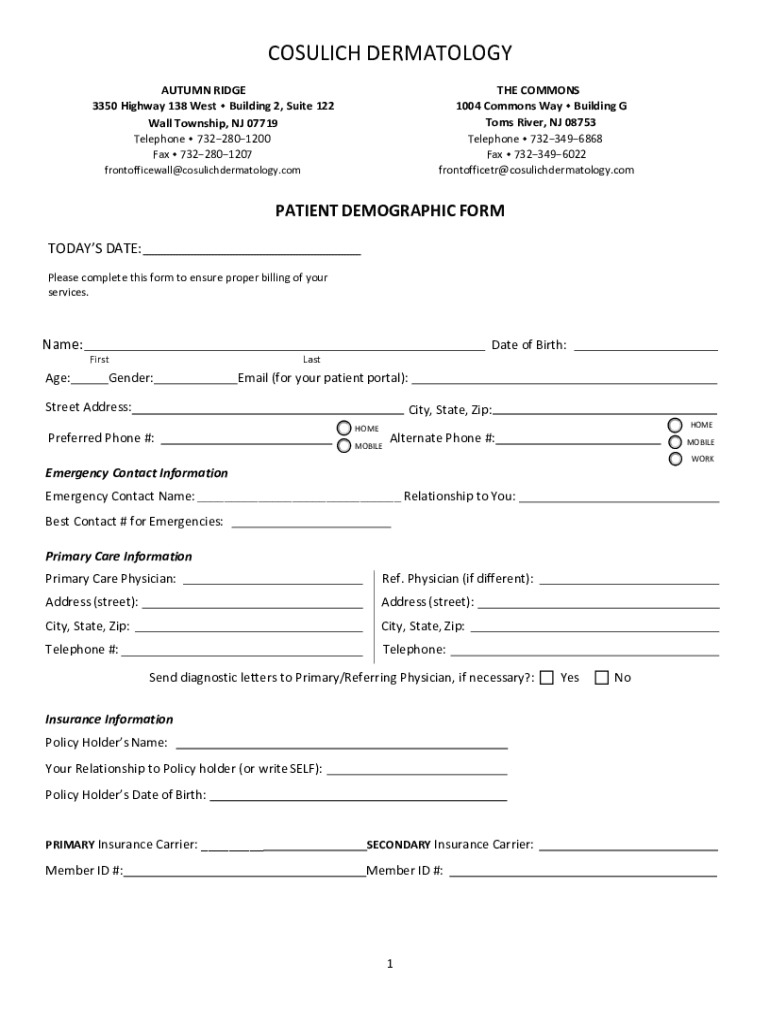 Anyone seeking medical treatment or consultation from Dr. Michael T. Cosulich would need to fill out his form.