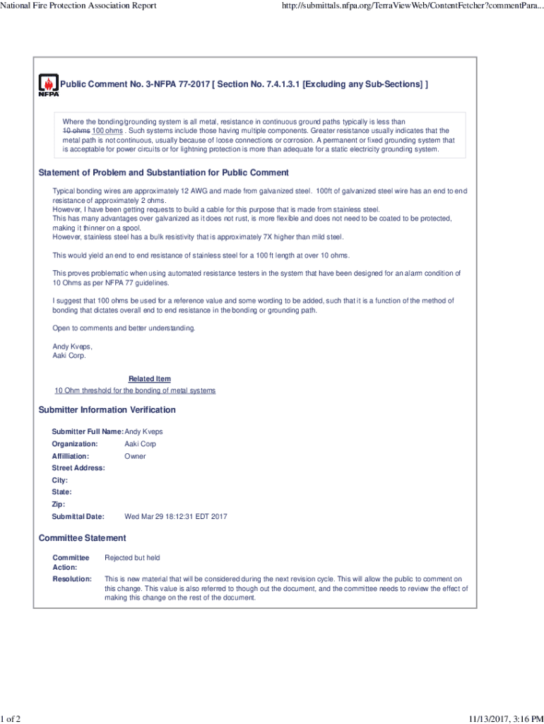 National Fire Protection Association Report1 of 2http://submittals.nfpa.org/TerraViewWeb/ContentFetcher?commentPara... Public Comment No. 3NFPA 772017 [Section No. 7.4.1.3.1 [Excluding any SubSections]]Where