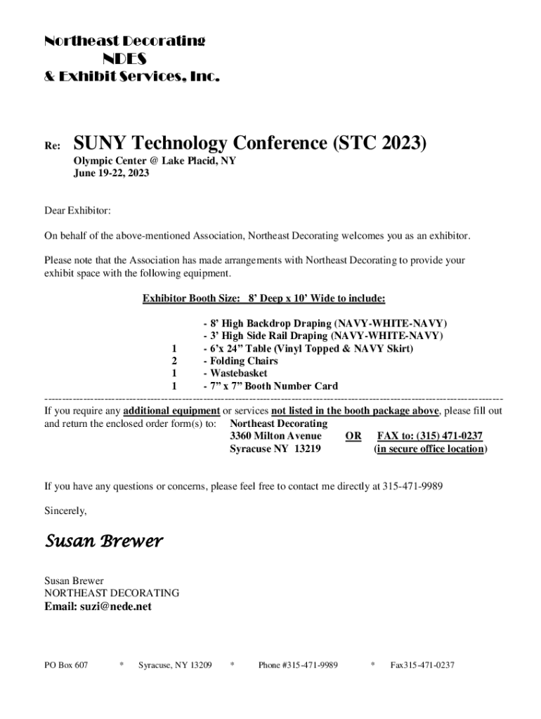 Get the free Northeast Decorating and Exhibit Services IncSyracuse NY - stc suny