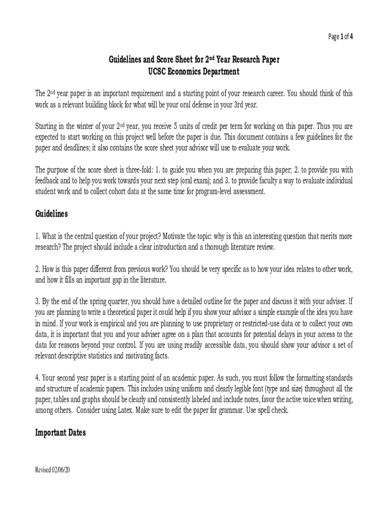 Page 1 of 4Guidelines and Scoresheet for 2nd Year Research Paper UCSC Economics Department The 2nd year paper is an important requirement and a starting point of your research career. You should think