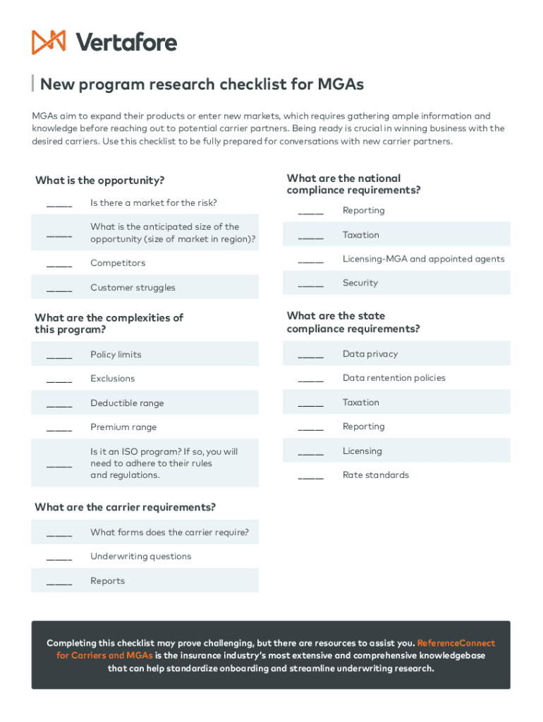 Get the free New program research checklist for MGAs