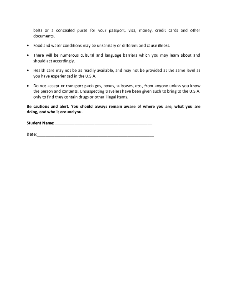 Potential Risks to Student Participating in a Study Abroad Program Once you leave U.S. jurisdiction, you are not covered by U.S. laws or U.S. Constitutional Rights. Should you be detained or arrested
