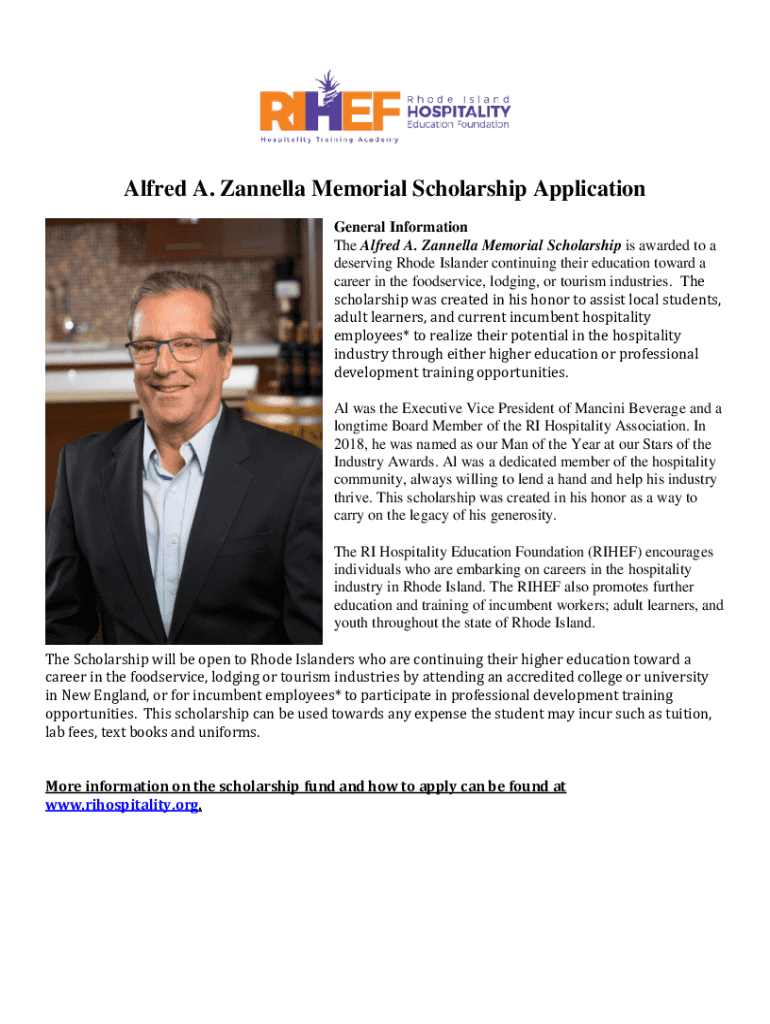 Get the free Alfred A. Zannella Memorial Scholarship Application