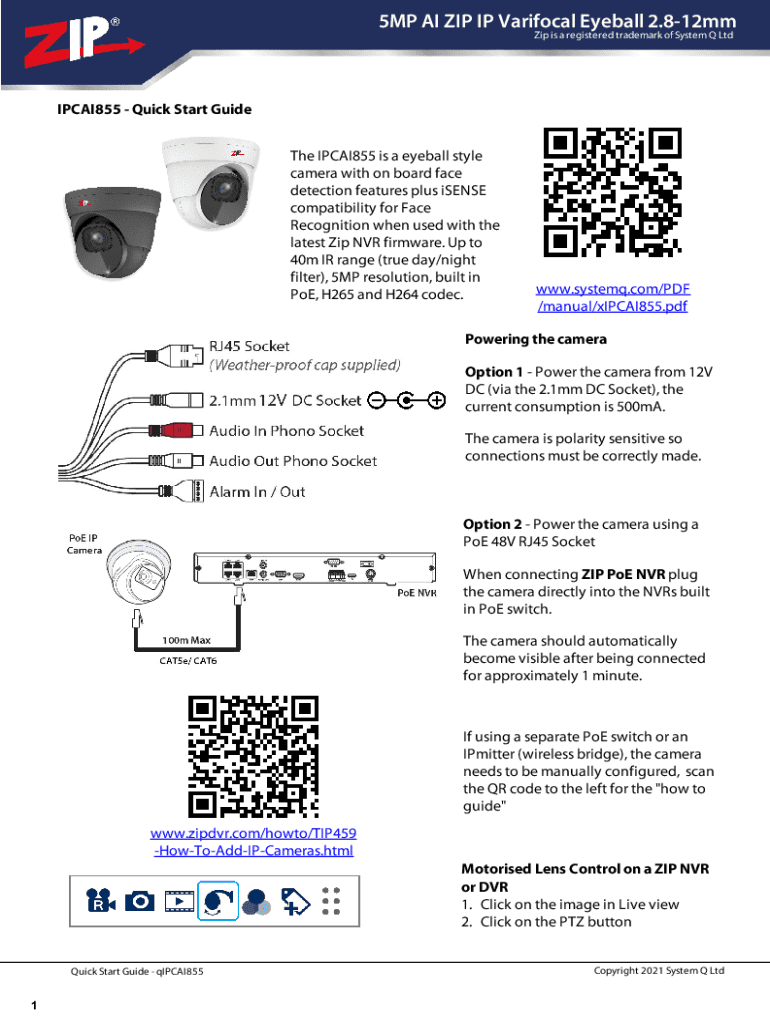 Zip is a registered trademark of System Q LtdIPCAI855 Quick Start Guide