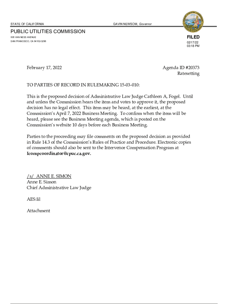 Get the free Agenda ID #20373 - docs cpuc ca
