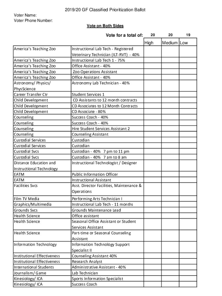 2019/20 GF Classified Prioritization Ballot