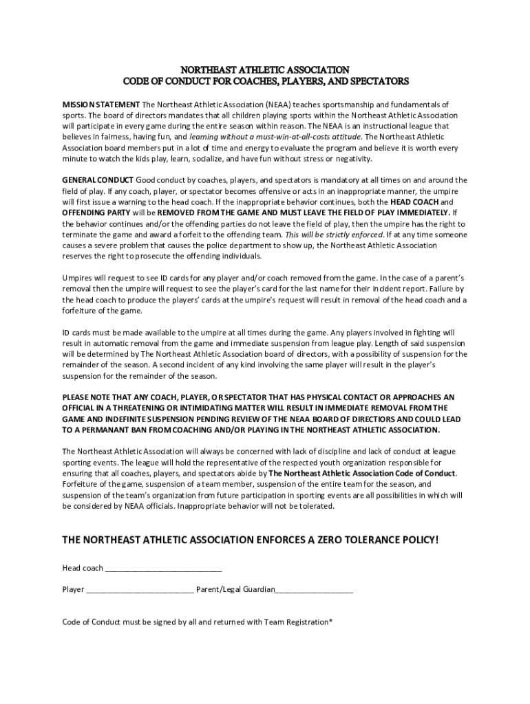 Get the free Northeast Athletic Association Code of Conduct for Coaches ...