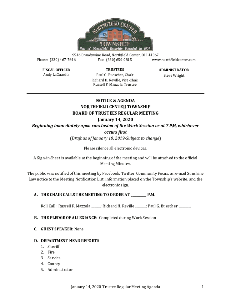 9546 Brandywine Road, Northfield Center, OH 44067 Phone: (330) 4677646 Fax: (330) 6500815 www.northfieldcenter.com TRUSTEES Paul G. Butcher, Chair Richard H. Seville, Timeshare Russell F. Mazola,