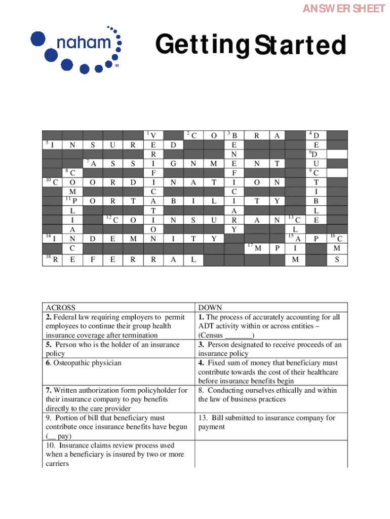 ANSWER SHEETGetting Started 1 5IN 7SURASSORDORT8 101418CI RC O M 11 P L I A N C E12DCEO MV E R I F I C A T I O N2COGNMNATBILNSUITYD3B E N E F I C I A R Y 17FERRAACROSS 2. Federal law requiring employers