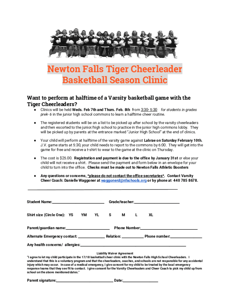 Get the free Newton Falls Tiger Cheerleader Basketball Season Clinic