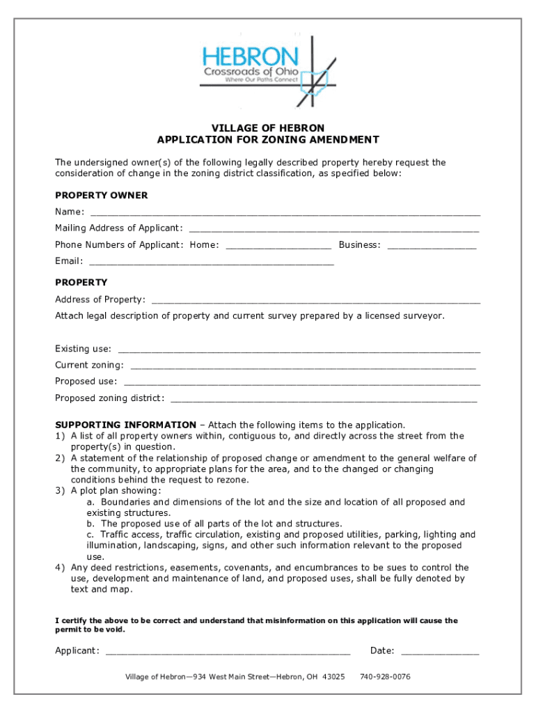 Get the free village of hebron application for zoning amendment