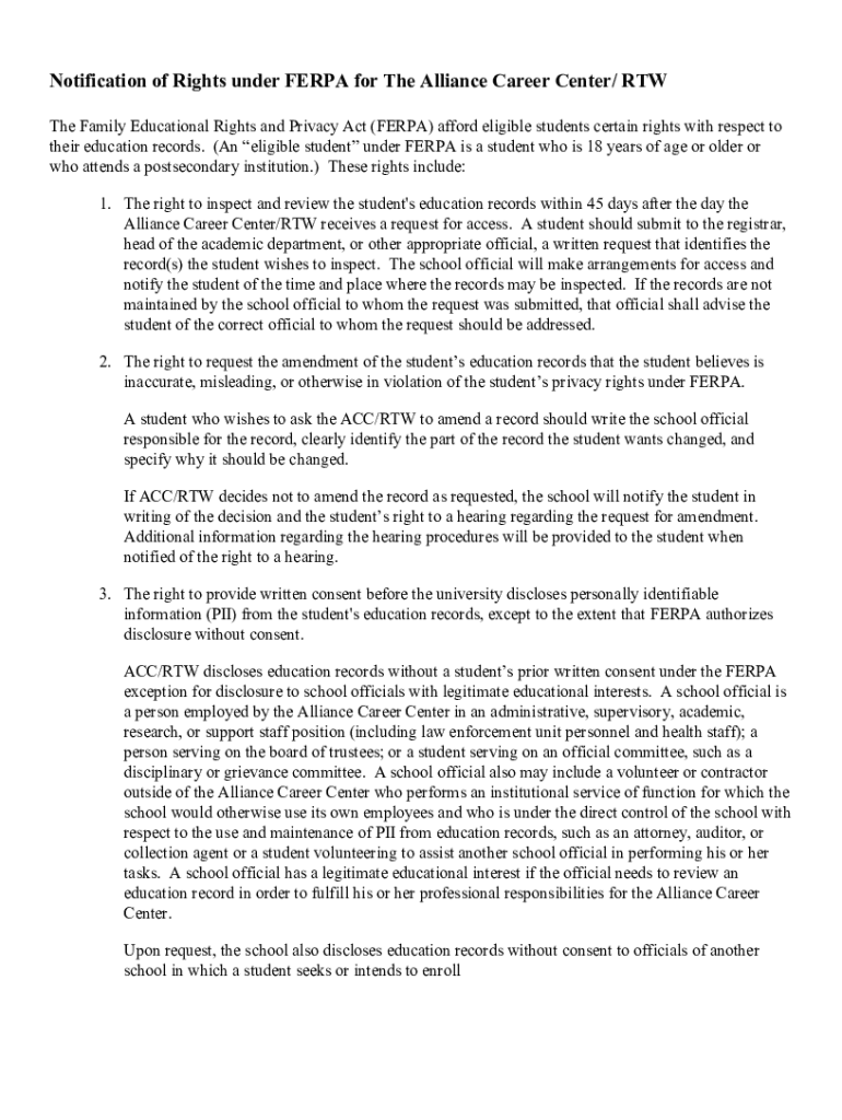 Get the free Notification of Rights under FERPA for The Alliance Career ...