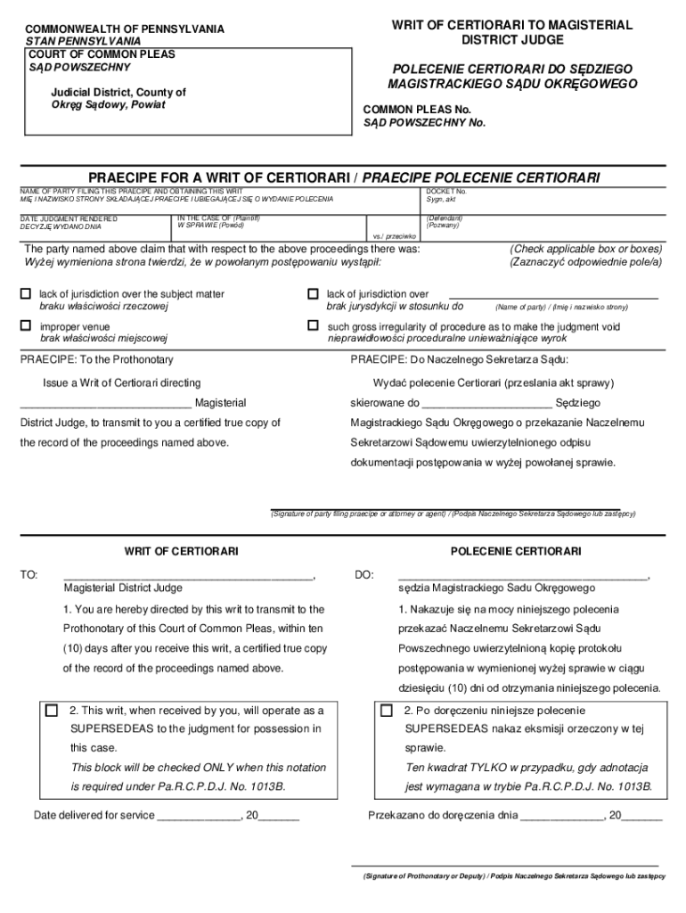 Polish Writ Of Certiorari is not the form you're looking for?Search for another form here.