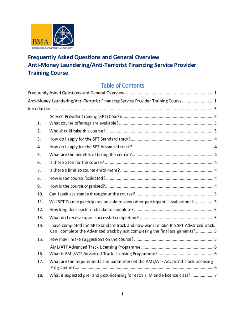 Frequently Asked Questions and General Overview Antimony Laundering/AntiTerrorist Financing Service Provider Training Course Table of Contents Frequently Asked Questions and General Overview ............................................................................