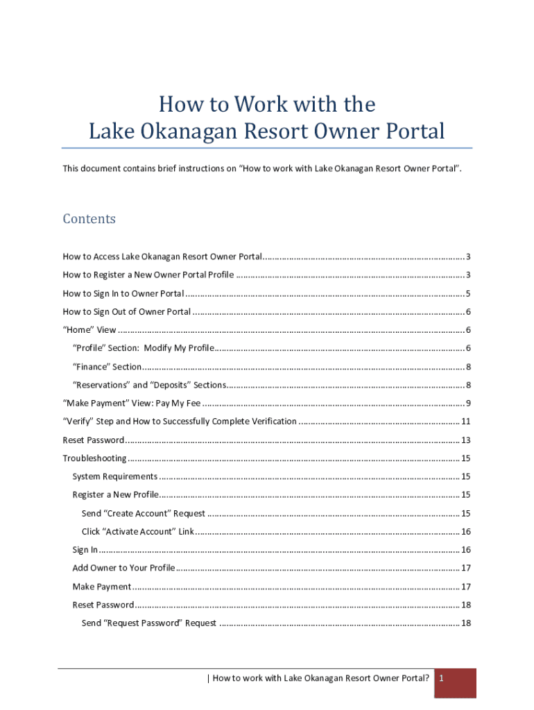 How to Work with the Lake Flanagan Resort Owner Portal This document contains brief instructions on How to work with Lake Flanagan Resort Owner Portal. Contents How to Access Lake Flanagan Resort