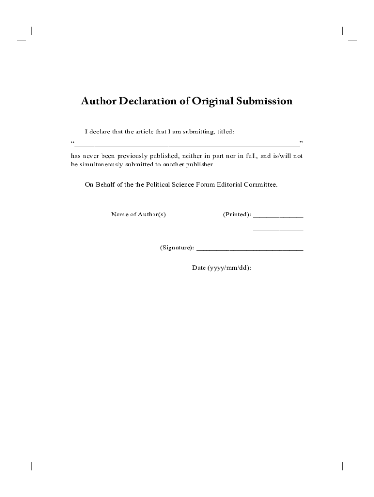 Sign and date the author declaration of original to verify the accuracy of the information provided.