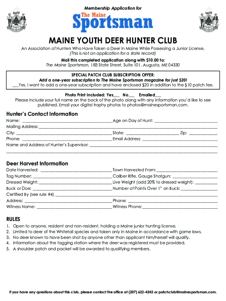 Membership Application sportsman The Maintain YOUTH DEER HUNTER CLUB An Association of Hunters Who Have Taken a Deer in Maine While Possessing a Junior License. (This is not an application for a state