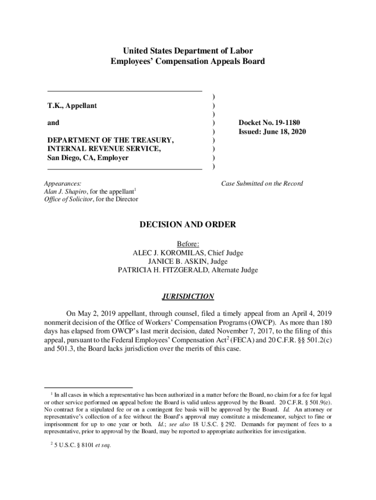 Get the free 19-1180: T.K. and DEPARTMENT OF THE TREASURY, INT...