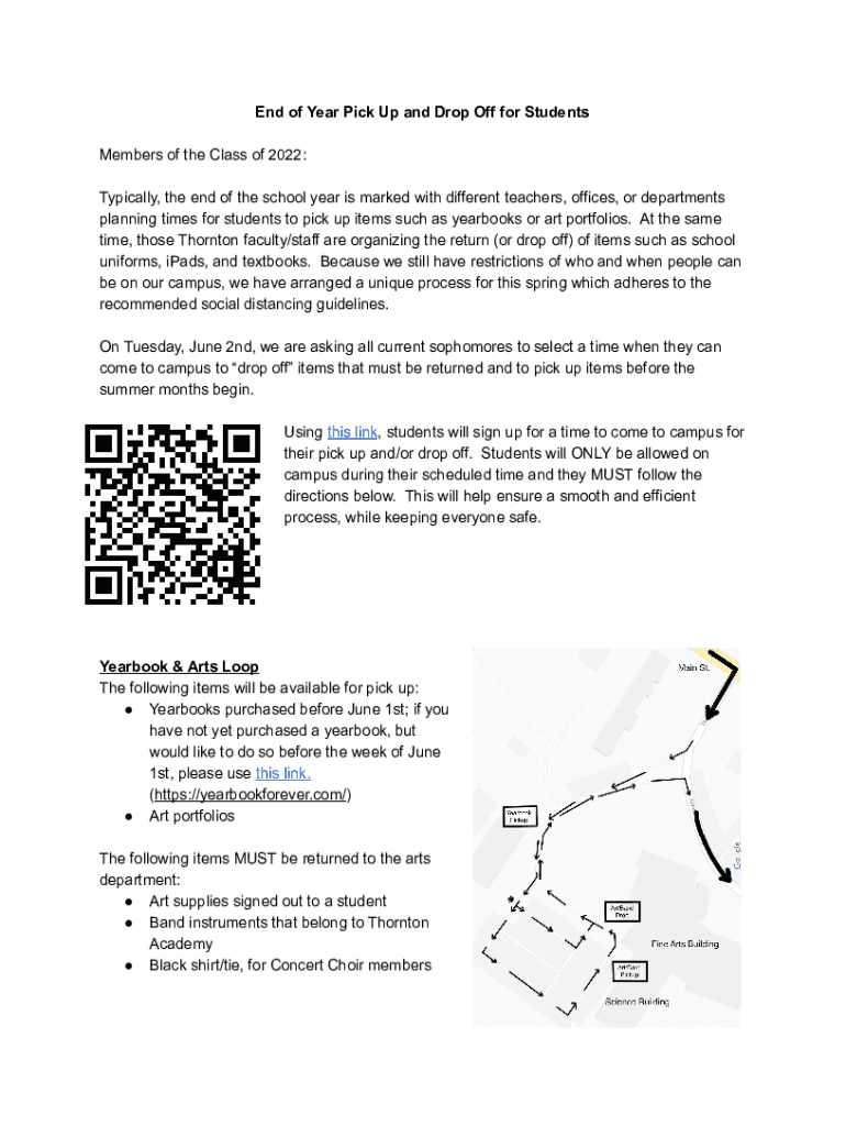 End of Year Pick Up and Drop Off for Students Members of the Class of 2022: Typically, the end of the school year is marked with different teachers, offices, or departments planning times for students