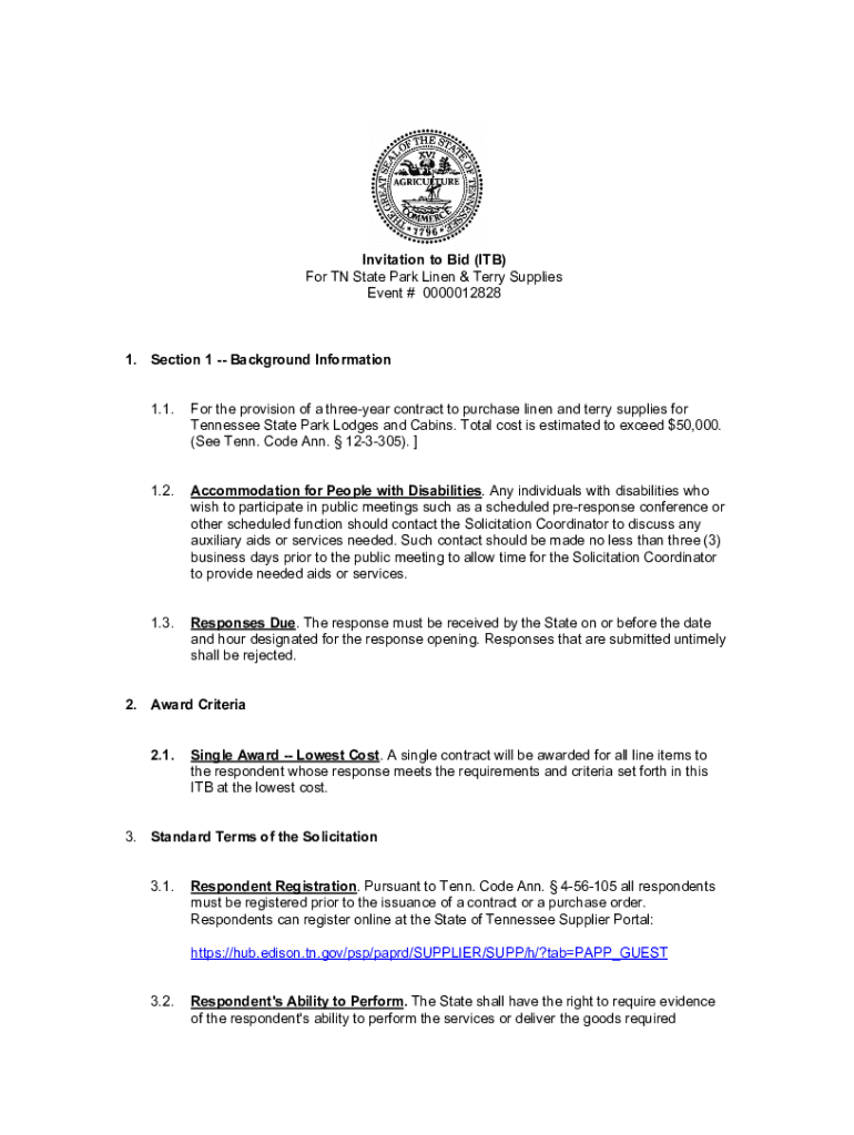 1.1. For the provision of a threader contract to purchase linen and terry supplies
