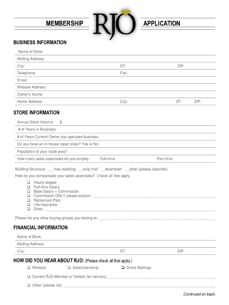 MEMBERSHIPAPPLICATIONBUSINESS INFORMATION Name of Store: Mailing Address: City:ST:Telephone:Fax:ZIP:Email: Website Address: Owners Name: Home Address:City:ST:ZIP:STORE INFORMATION Annual Store Volume:$#