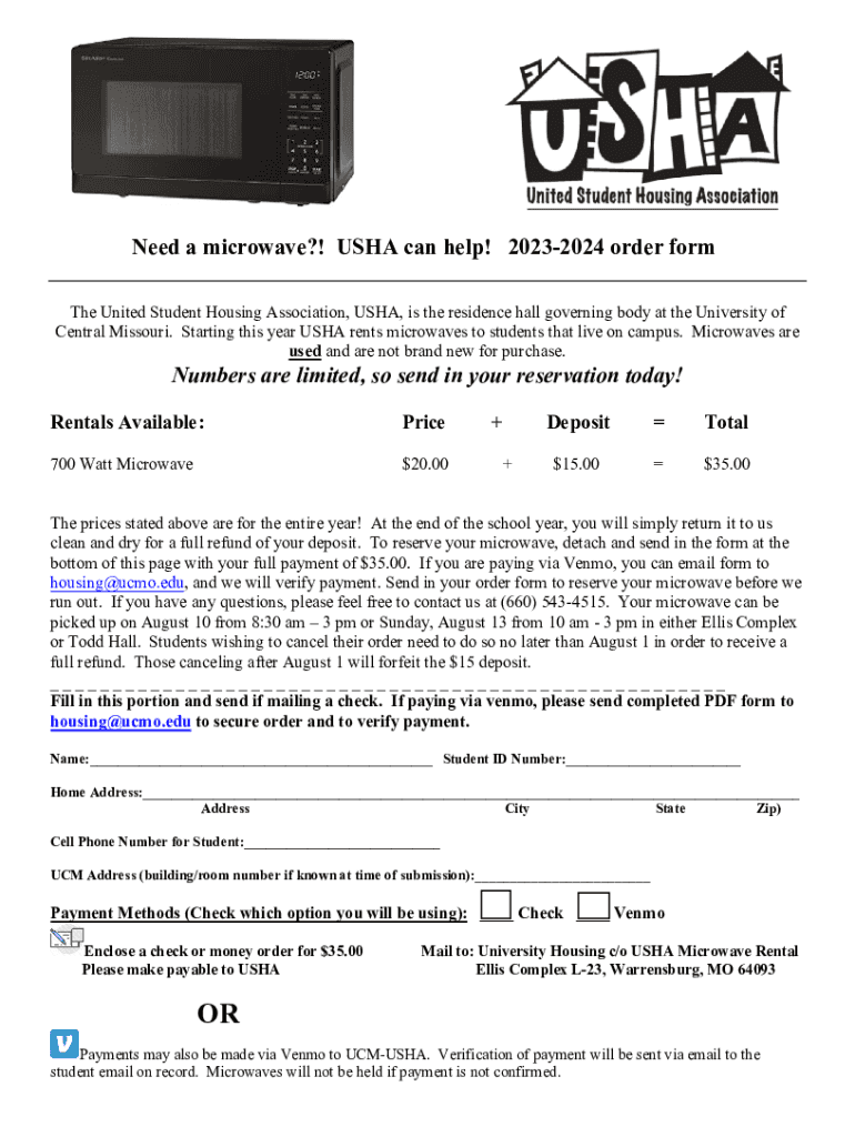 Need a microwave?! USA can help! 20232024 order from The United Student Housing Association, USA, is the residence hall governing body at the University of Central Missouri. Starting this year USA