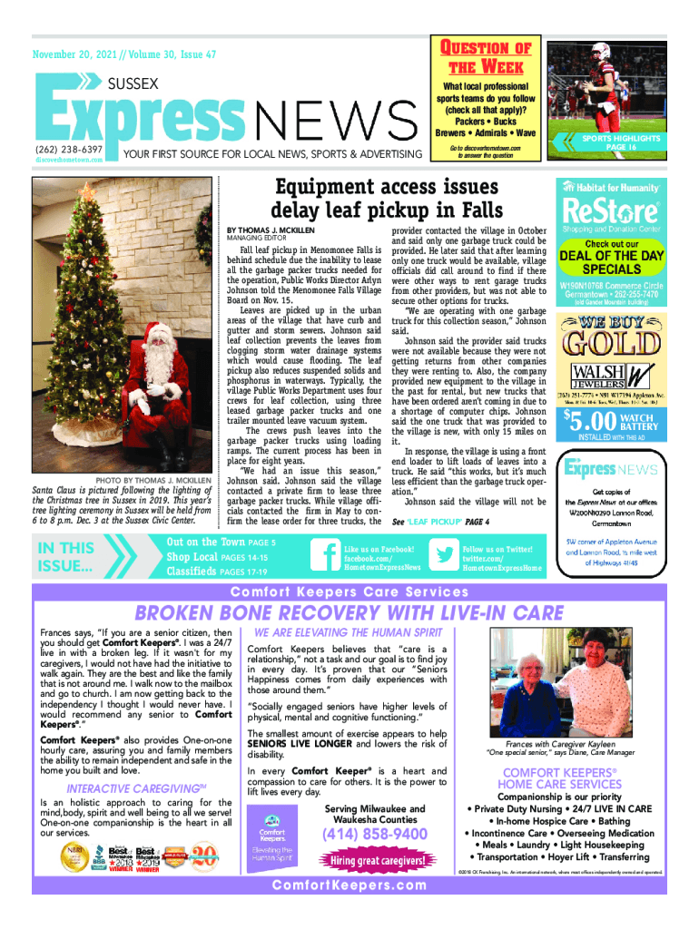QUESTION OF THE WEEK November 20, 2021 // Volume 30, Issue 47SUSSEX(262) 2386397 discover hometown. Combat local professional sports teams do you follow (check all that apply)? Packer Bucks Brewers