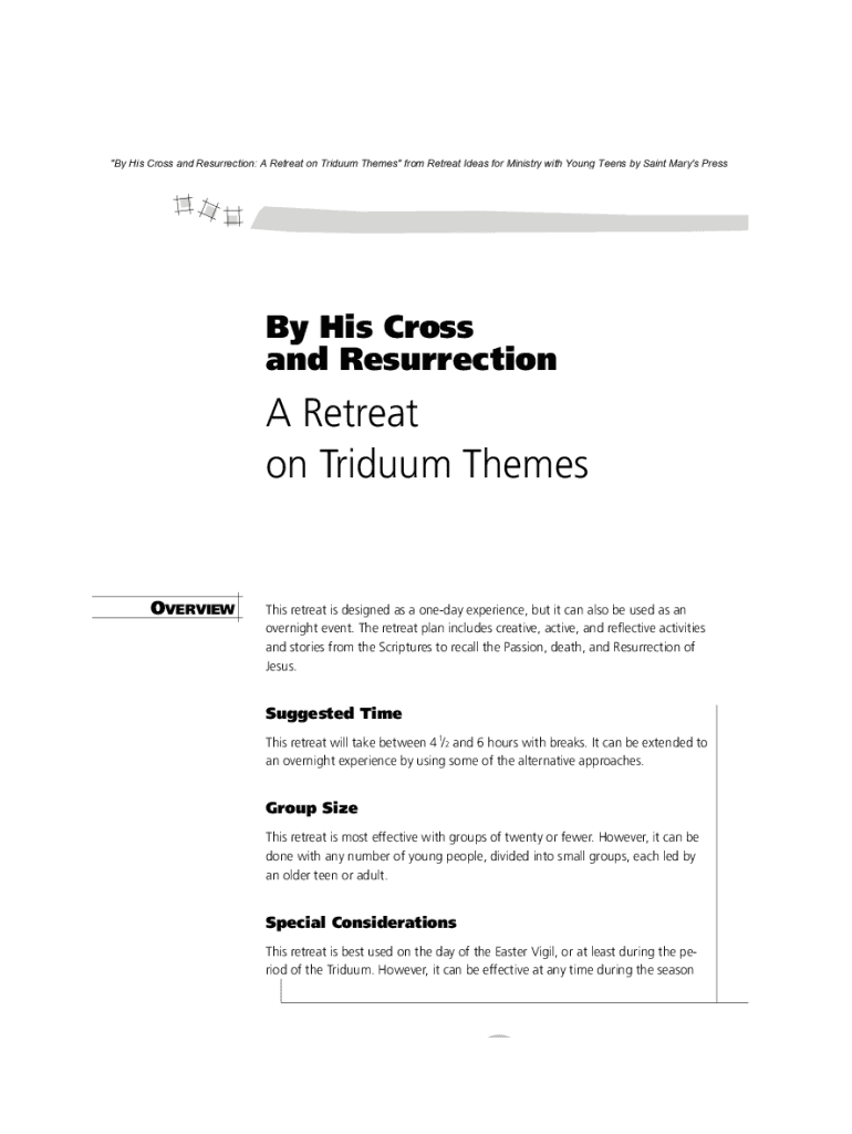 \” By His Cross and Resurrection: A Retreat on Triduum Themes\” from Retreat Ideas for Ministry with Young Teens by Saint Mary\'s Press His Cross and Resurrection Retreat on Triduum ThemesOVERVIEWThis