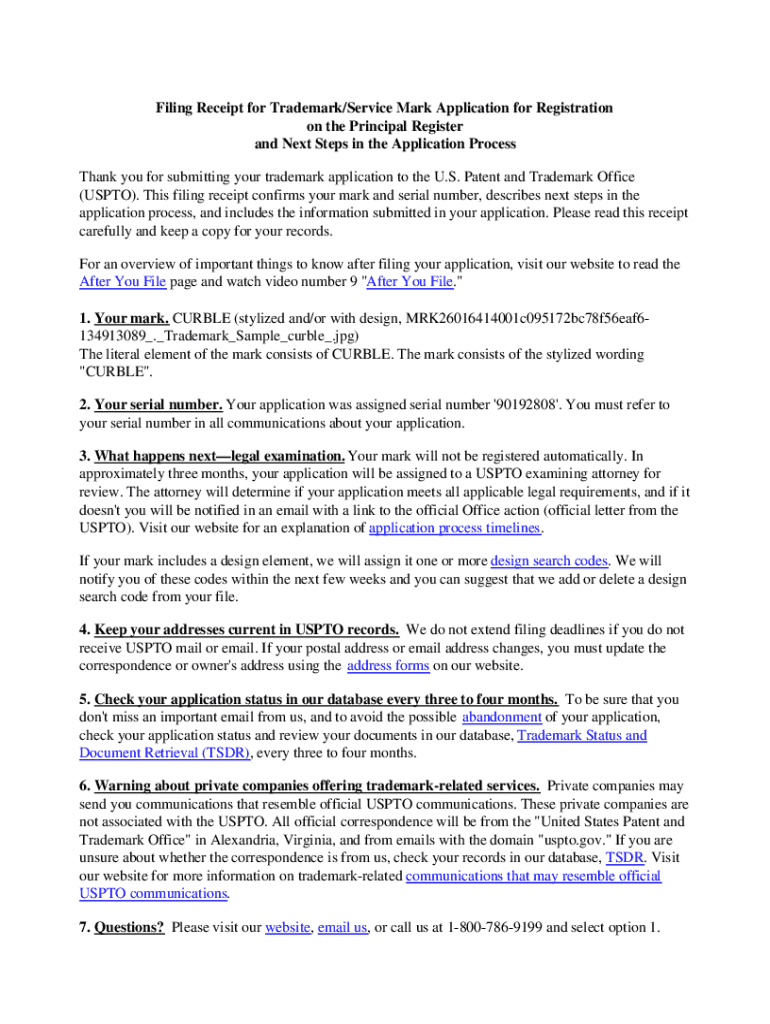 Edit your filing receipt for trademarkservice form online