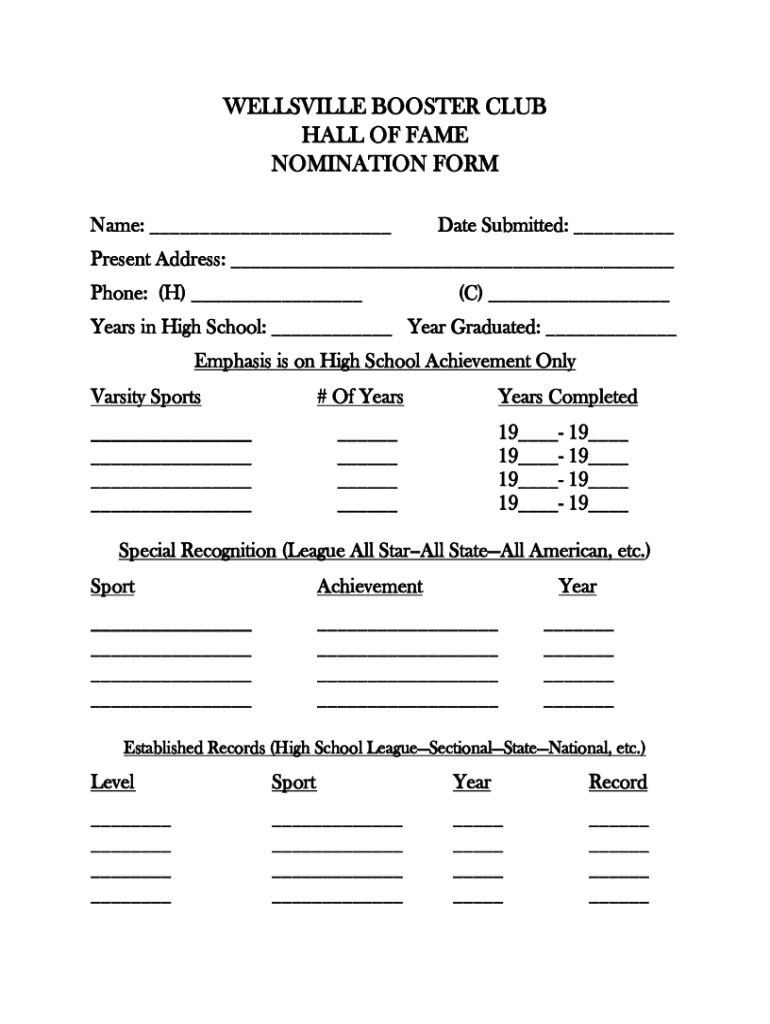 Get the free Hall of Fame- Nomination Form