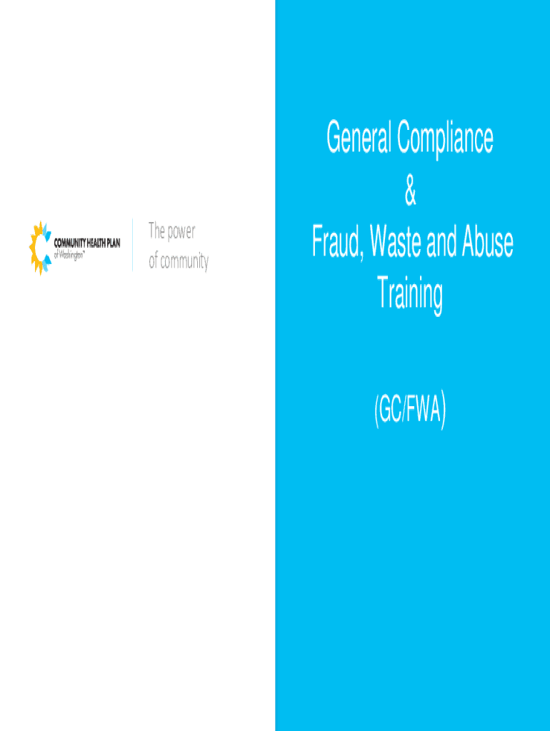 The power of communityGeneral Compliance & Fraud, Waste and Abuse Training (GC/FWA)General Compliance/FWA Education Program CHEW is required by contract with the Centers for Medicare & Medicaid Services