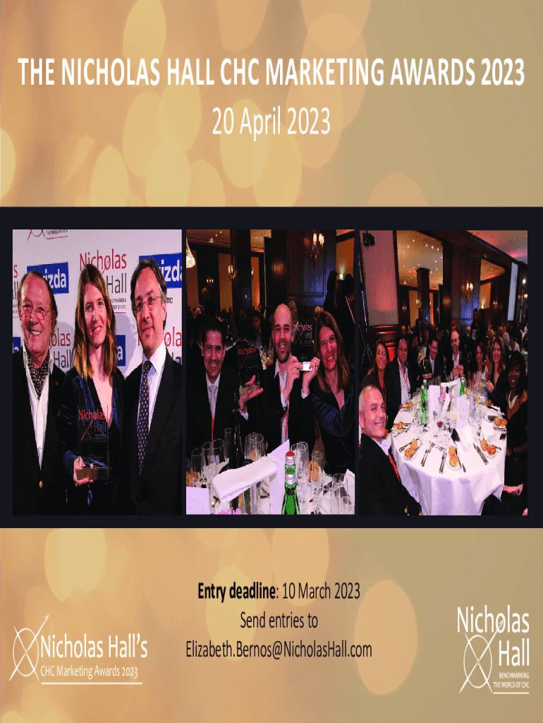 THE NICHOLAS HALL CHC MARKETING AWARDS 2023 20 April 2023CHC Marketing Awards 2023Entry deadline: 10 March 2023 Send entries to Elizabeth.Bernos@NicholasHall.comThe Selection Process Nicholas Hall,