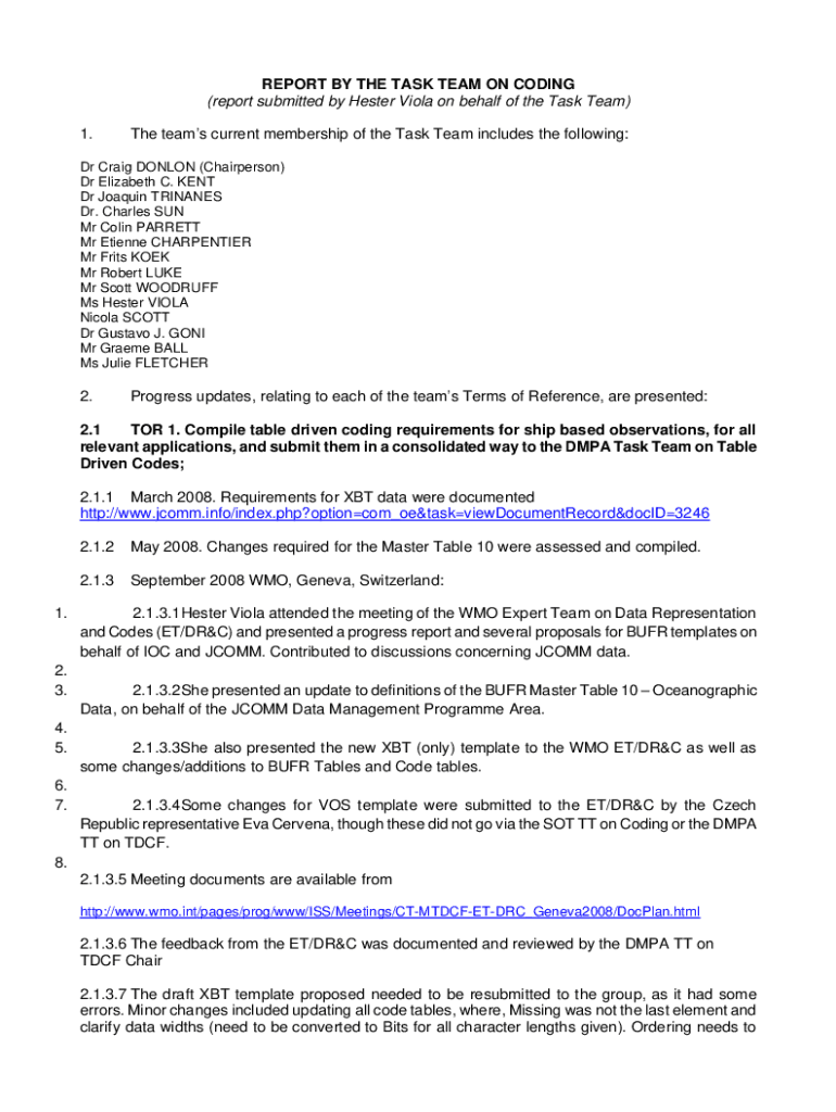 REPORT BY THE TASK TEAM ON CODING (report submitted by Hester Viola on behalf of the Task Team) 1. The teams current membership of the Task Team includes the following:Dr Craig LONDON (Chairperson)