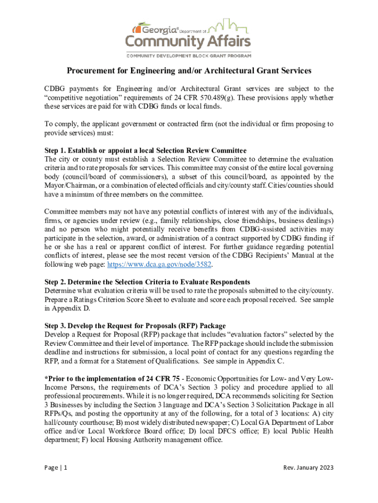 Get the free Procurement for Engineering and/or Architectural Grant Services