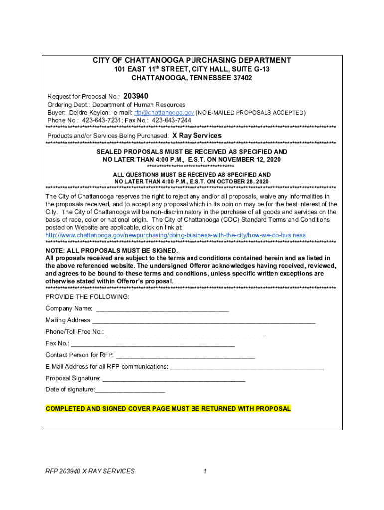 CITY OF CHATTANOOGA PURCHASING DEPARTMENT 101 EAST 11th STREET, CITY HALL, SUITE G13 CHATTANOOGA, TENNESSEE 37402 Request for Proposal No.: 203940 Ordering Dept.: Department of Human Resources Buyer: