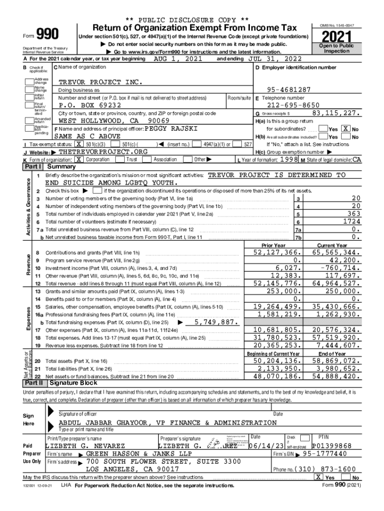 Form990Return of Organization Exempt From Income Tax OMB No. 15450047| Do not enter social security numbers on this form as it may be made public. Open to Public
